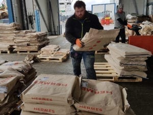 Når Hermes er inne og losser, står et losseteam klart på kaia og tar imot oss. 10-12 sterke menn beskrives av skipper Åsmund Breivik som «verdens beste lossere».