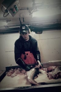 – Jeg stortrivdes om bord på Hermes. Jeg var mest i gørringa, men fikk også prøvd handsløyinga, fylling av fryser, rykking av fryser, og stuing av blokkene nede i rommet, forteller Joakim Rishaug Bergseth, som går VG2 fiske og fangst på Fræna vidaregåande skole i Møre og Romsdal.