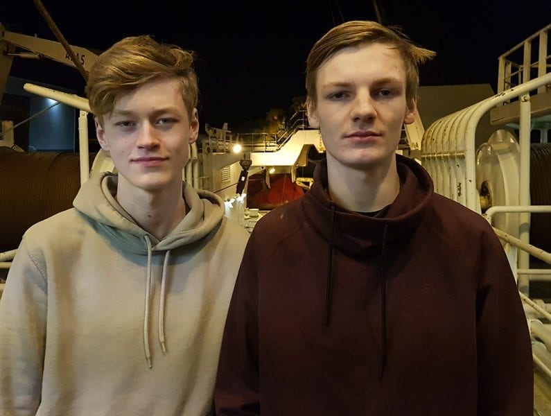 Elevene forteller at de trivdes godt blant mannskapet, som de sier stort sett var kjekke folk som var flinke til å lære fra seg.